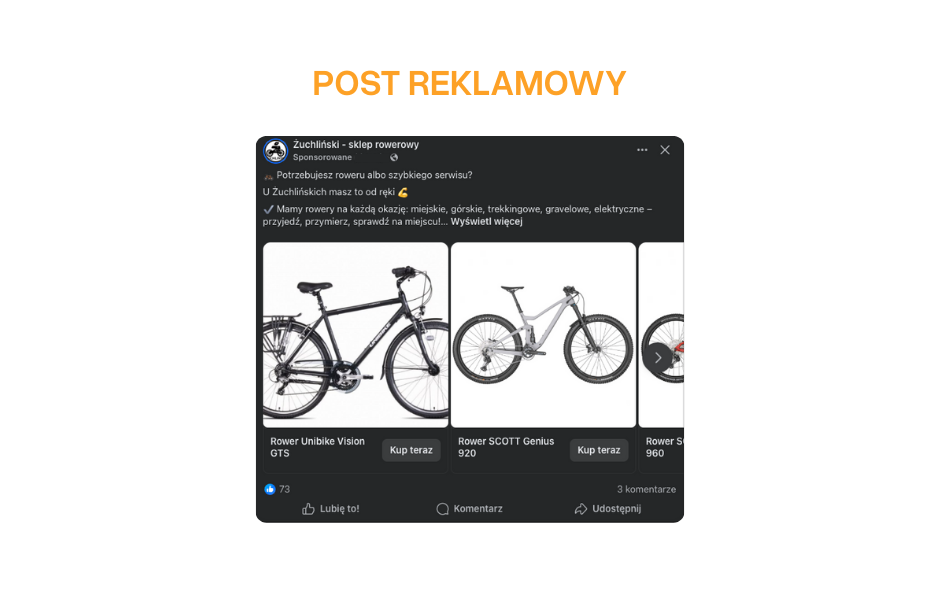 ◼️ Skupiliśmy się na produktach wysokomarżowych – reklamowaliśmy tylko wybrane rowery i akcesoria, które generowały największy zysk. Dzięki temu ograniczony budżet nie rozpraszał się na niskomarżowe towary.