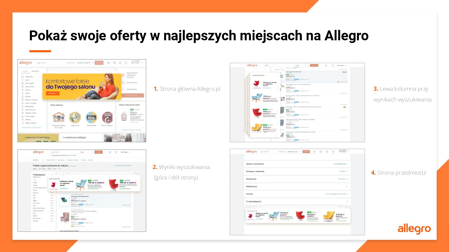 Allegro Ads oferuje kilka formatów reklamowych, które można dostosować do indywidualnych potrzeb i celów marketingowych: